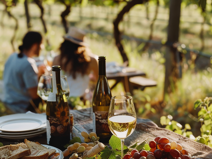 Un picnic entre viñedos con productos delicatessen y una botella a elegir, con visita guiada a la bodega según disponibilidad.
